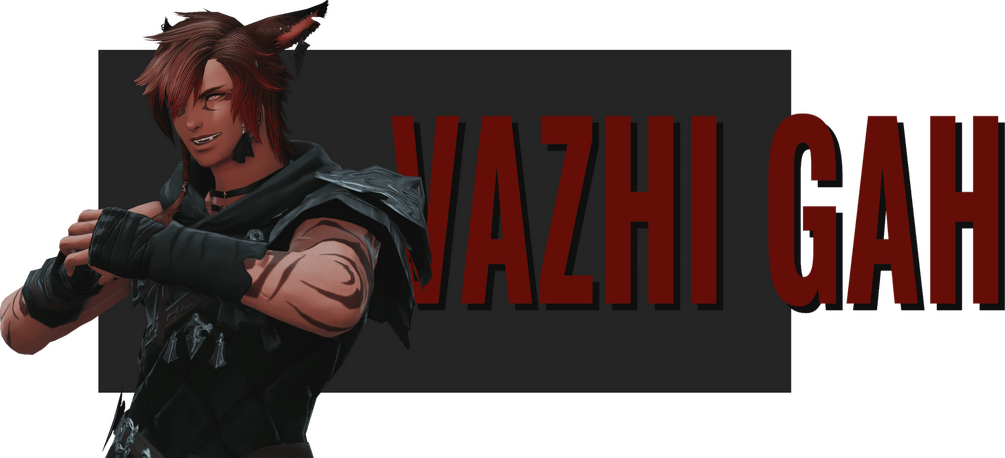 Vazhi is Tataru's go-to taskman. He's quick to agree to whatever schemes she has in mind, and has done everything from escorting whatever new products she cooks up to fill the Scions' coffers, to acting as the bruiser for business deals-gone-wrong. In exchange for doing her dirty work, Tataru keeps Vazhi's weapons and gear in tip-top shape, with only minimal complaining about how poorly he takes care of them.